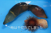 クロホシアカナマコ![]() | アカオニナマコ![]() | テツイロナマコ![]() 撮影・渡辺淑子氏 |