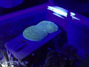 ![]() ブラックライトに照らされて | ![]() 蛍光に光ります | ![]() サンゴの蛍光発色 |